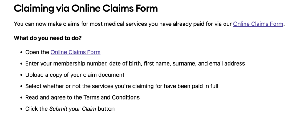 Medibankの公式HPに、請求の仕方が載っています。何種類かあるので、やりやすいものを選べばいいと思います。