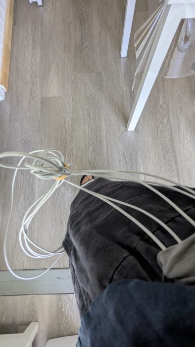 線がどこかにひっかからないように輪ゴムでまとめてみました。