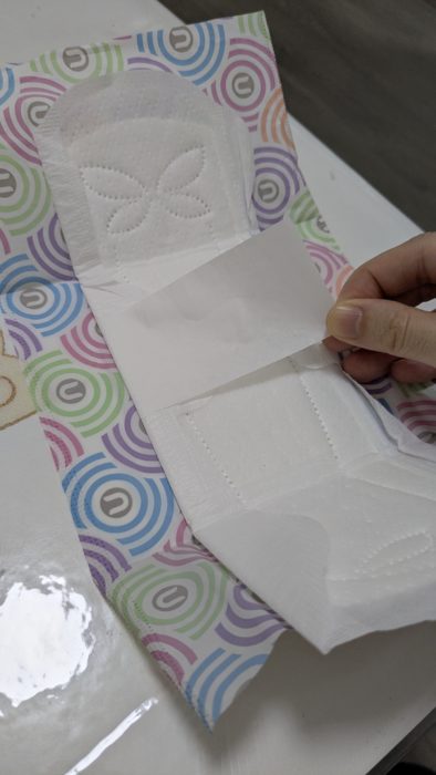 ナプキン自体はシンプルで極薄です。これで本当に吸収してくれるのか疑っちゃうほど。