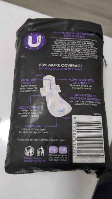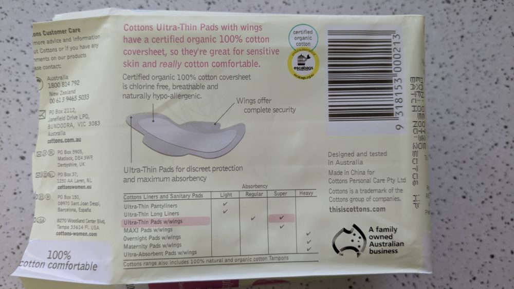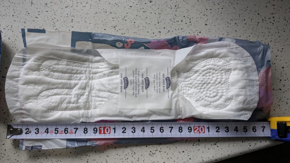 日本のナプキンと比べると、オーストラリアのはもっとシンプルですね。日本のは細かい部分(フィットするか?とか素材にもっとこだわってるとか)まで考えられてると思います。