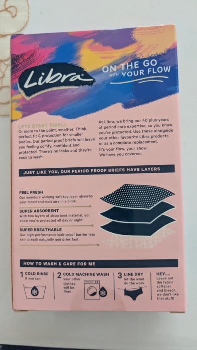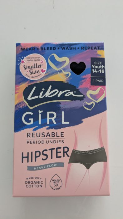 それでこのショーツにしたわけです。Libraの公式HPに載ってる寸法と、日本で買ったショーツの寸法を照らし合わせてなるべく近いサイズを選びました。(ちなみに私は無印でいつも買うので、すぐ調べられました)