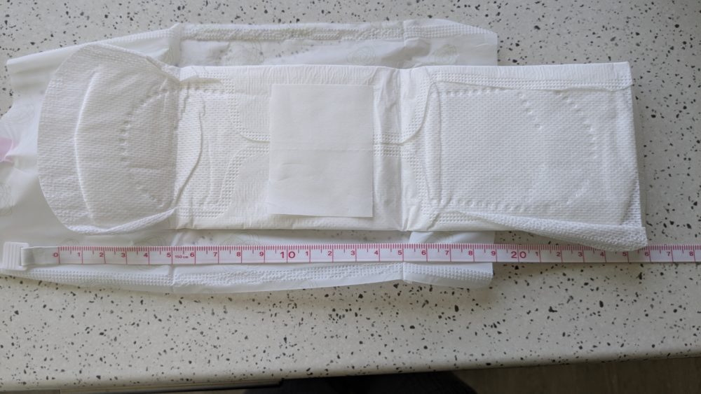 メジャーで測ってみました。日本から持ってきた生理用ショーツと大差なかったので、サイズは問題なかったです。