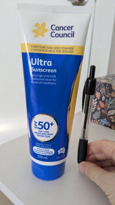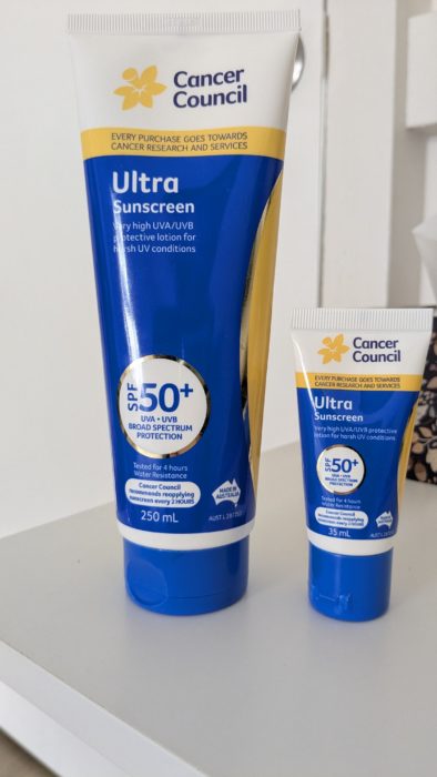 オーストラリアのCancer councilから出ている日焼け止めがすごくいいです。いろんな種類があるのでどれを買おうか迷いますが、我が家がいま使っているのはUltra sunscreen SPF50+です。