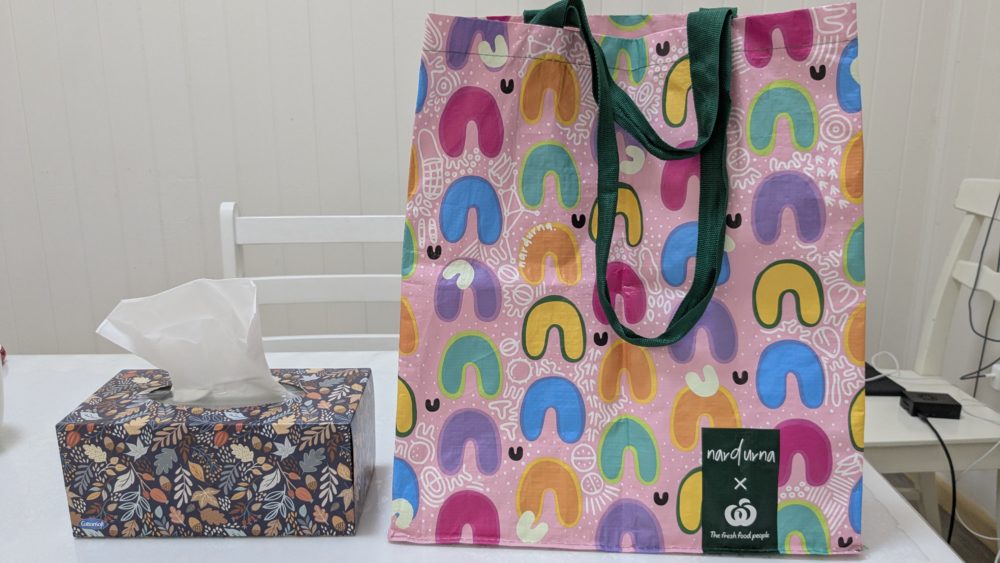 オーストラリアに来てから買ったもの、それはエコバッグ。国内あちこちで見かけるスーパーColesとWoolworthsにはカラフルなエコバッグが売ってます。