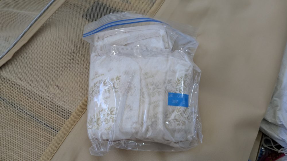 日本で使いきれなかったナプキン(夜用と昼用それぞれ3〜4枚)をジップロックで圧縮させて持ってきました。ナプキンはこっちでも売ってるので要らないかなと思ったんですが、念のため。