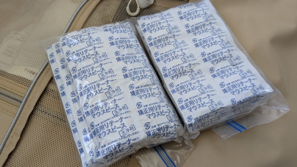 大量に残っていたので持ってきました。マウスピースは毎晩寝る時に着用しています。海外生活ではとにかく歯は大切にしなきゃいけないので、マウスピースも清潔に保ちたいです。