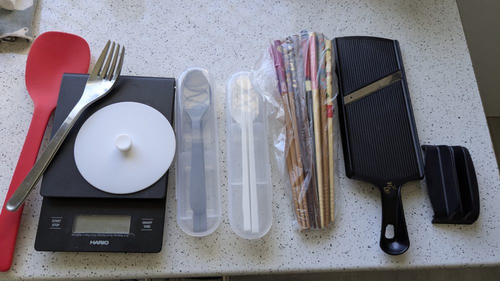 「現地で買った料理道具がだめすぎる」という夫の話を聞いて、普段から使っていた道具の多くを持ってきて引き続き使っています。