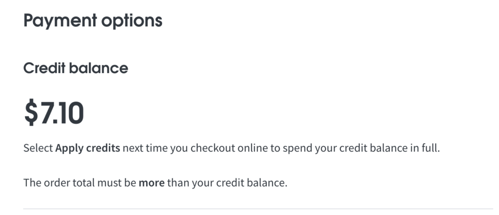 Payment opitionsを開いて、こんなふうにCredit balanceがあればOKです。