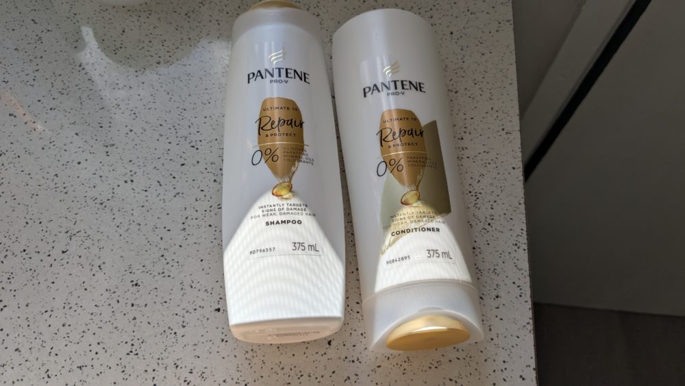 シャンプーコンディショナーはおなじみパンテーンです。半額でした。日本のようにポンプ式もあるけどシャワー室に置くスペースがないので、この形にしています。