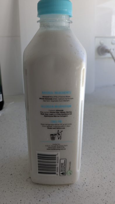 Unsweetened almond milk 1L: 3.3