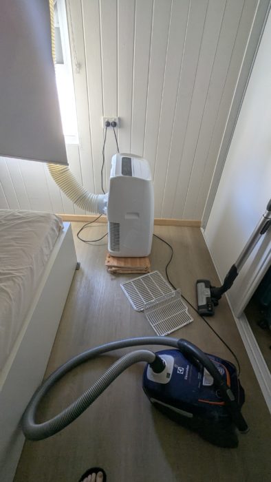 10月に大家さんが部屋に設置してくれた移動式エアコンが壊れちゃいました。しかも猛暑日が続く1週間のあいだに。
