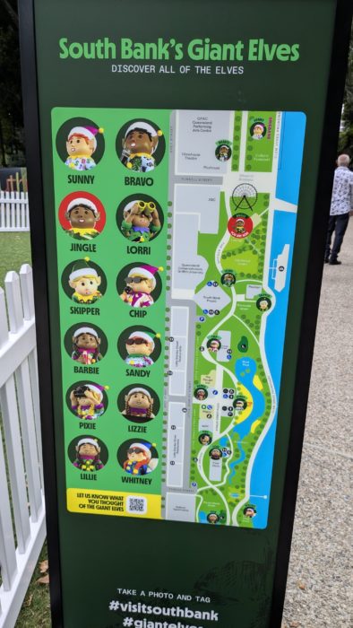 じゃあクリスマスの飾り付けってどんななの?っていうと、やはり夏仕様です。これはSouth Bankの公園で見かけたキャラクターたちです。