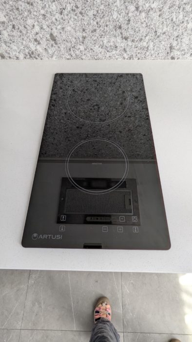 電源を入れて、やっとでIHコンロが使えるようになります。ON・OFFはなんとなく右上かな〜?正解でした。